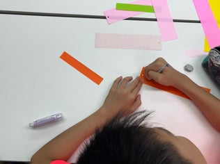 日本式の七夕の飾りつけをみんなで一緒に